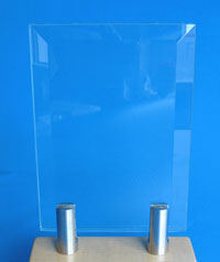 aus ESG ( Einscheiben-Sicherheits-Glas ) thermisch gehärtet, Kanten gefast, geschliffen und poliert. Edelstahl-Abstandhalter, Schrauben und Dübel. Preise für Druck / Folien bitte anfragen. Die Schilder sind Wetterfest. |